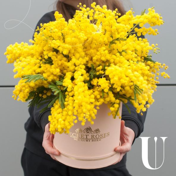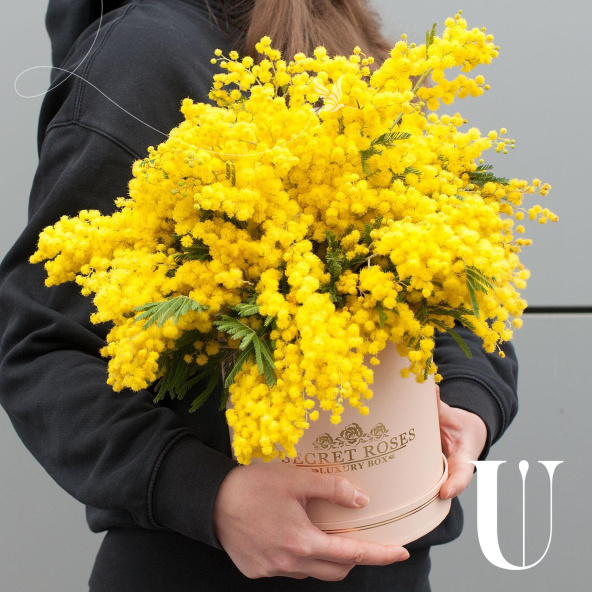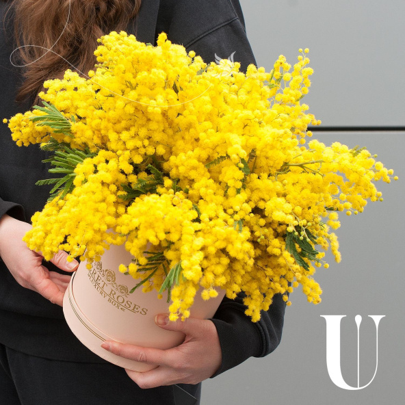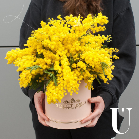 Нежная композиция из орхидей и альстромерий в шляпной коробке маджестик
