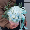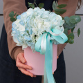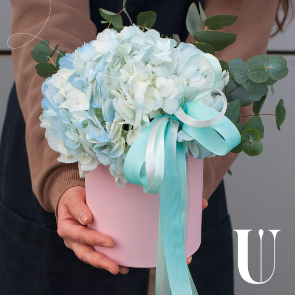 Особенностью данной композиции является использование гортензии голубого цвета. Этот цветок символизирует нежность и любовь, что делает его прекрасным выбором для подарка на День матери или День рождения.