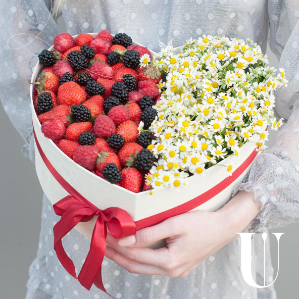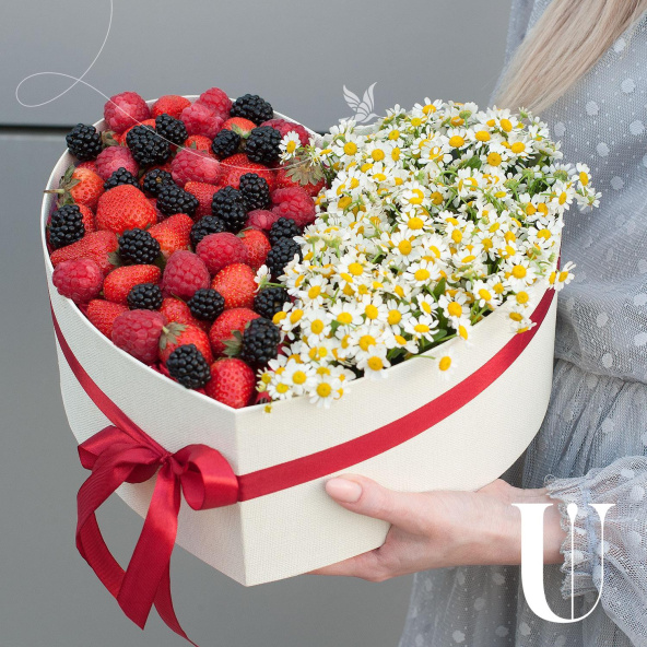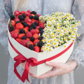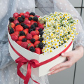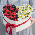 Коробка с клубникой, малиной, ежевикой и ромашками "Ягодная ромашка" - это композиция в коробке, которая станет отличным подарком для любого повода.