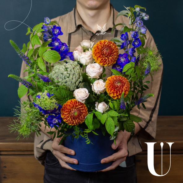 - Шляпная коробка, темно-синяя (выс. 15 см, диам. 12 см) - 1 шт