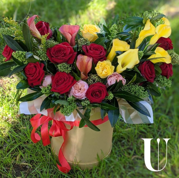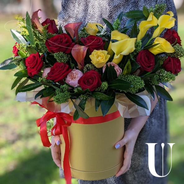 - Шляпная коробка золотая (выс. 25 см, диам. 22 см) - 1 шт