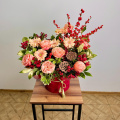 - Шляпная коробка бархатная, красная (выс. 15 см, диам. 20 см) - 1 шт
