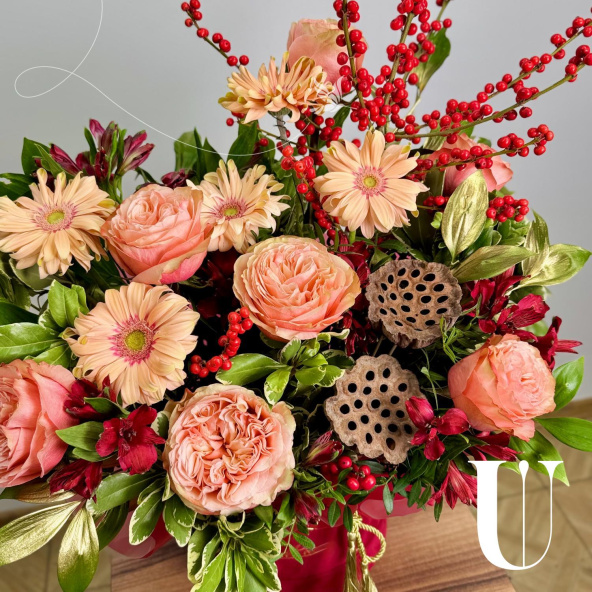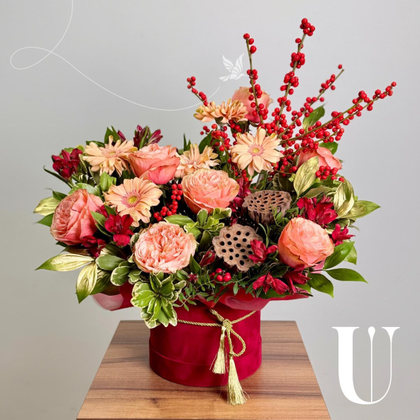 - Шляпная коробка бархатная, красная (выс. 15 см, диам. 20 см) - 1 шт