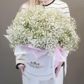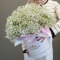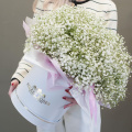 Выбирая шляпную коробку из белой гипсофилы "Воздушная", вы получаете стильный и качественный подарок, который будет радовать получателя своей красотой и свежестью.