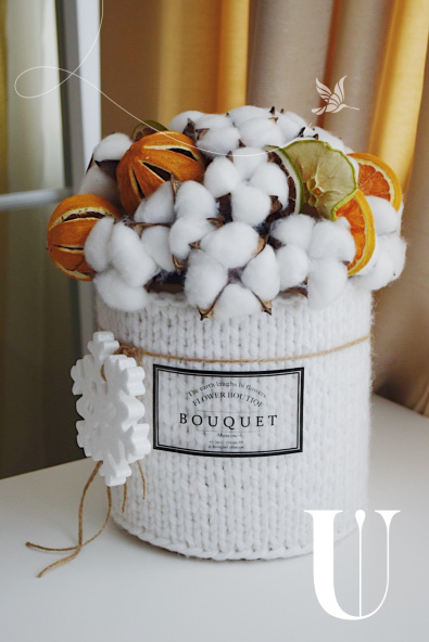 Шляпная Коробка в вязаном чехле с хлопком и сушенными мандаринами