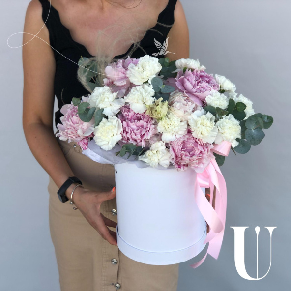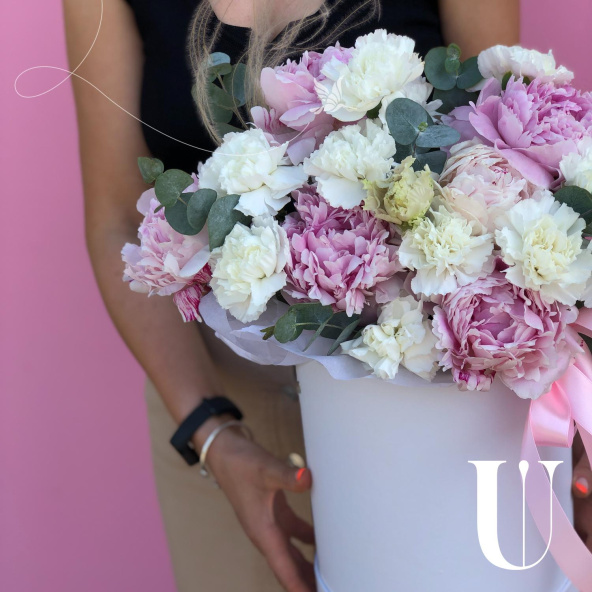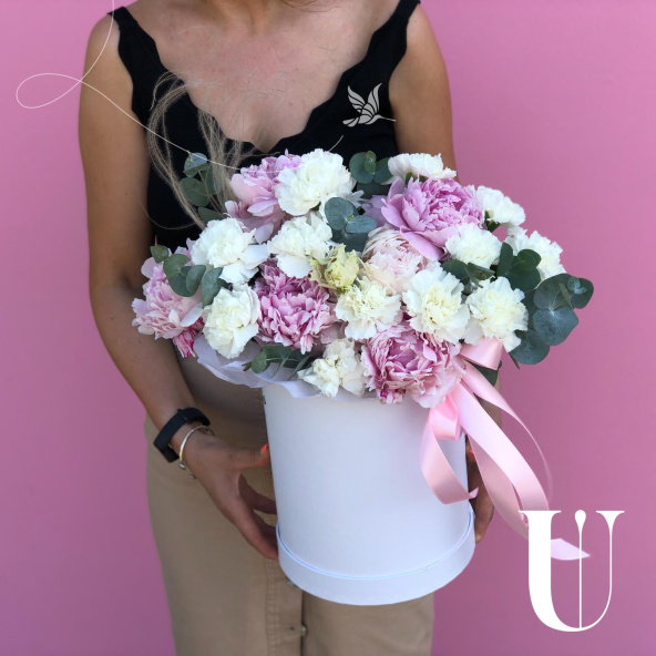 Нежнейшая коробочка с пионами не оставит получателя равнодушным