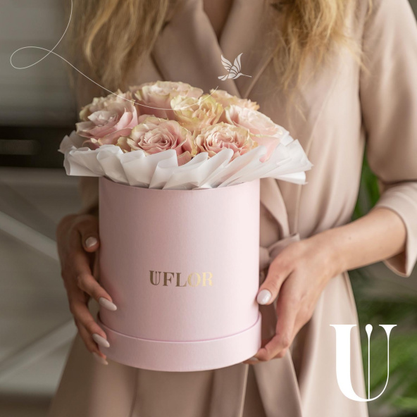 - Шляпная коробка маджестик (U), светло-розовая (выс. 18 см, диам. 16 см) - 1 шт