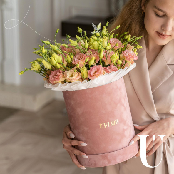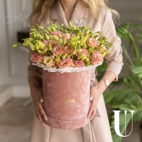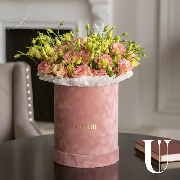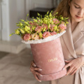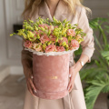- Шляпная коробка бархатная (U), пыльно-розовая (выс. 25 см, диам. 20 см) - 1 шт