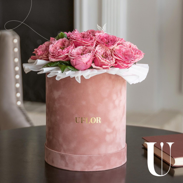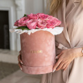 - Шляпная коробка бархатная (U), пыльно-розовая (выс. 25 см, диам. 20 см) - 1 шт