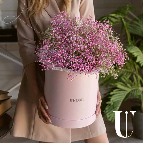 - Шляпная коробка маджестик (U), светло-розовая (выс. 27 см, диам. 25 см) - 1 шт