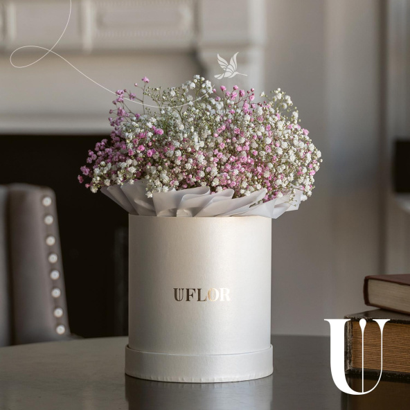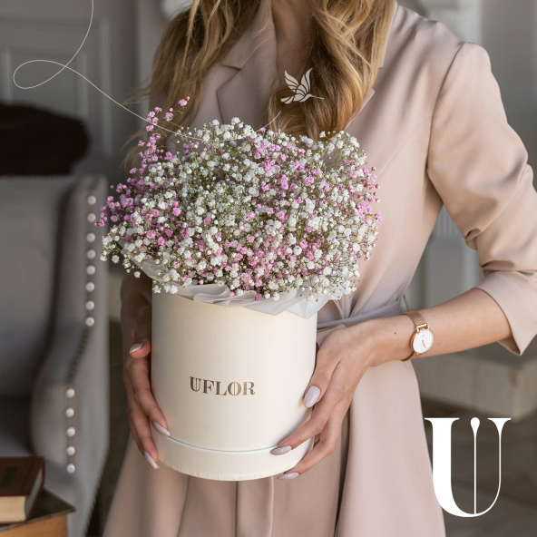 Цветы в коробке "Гипсофила Вайтроуз Айвори S"