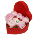 Композиция из гортензий микс и розовых диантусов в шляпной коробке