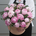 Букет состоит из 17 розовых пионов, которые придают композиции нежность и романтичность. Пионы - символ любви и преданности, они станут отличным подарком для любимой, мамы, бабушки, коллеги или делового партнера.