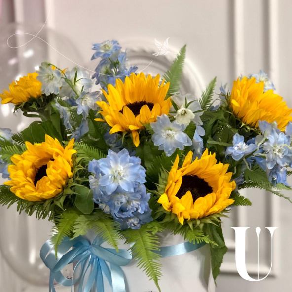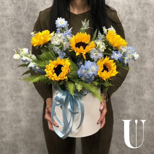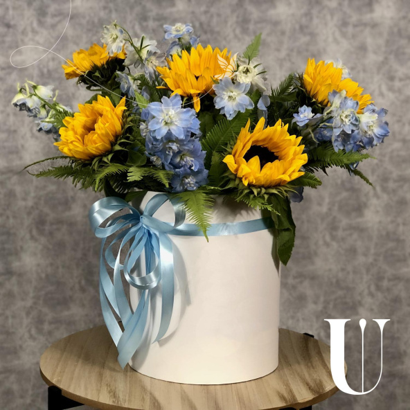 Яркая, солнечная, притягательная композиция в шляпной коробке зарядит позитивом на весь день