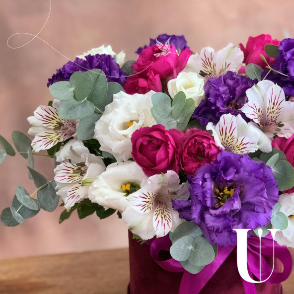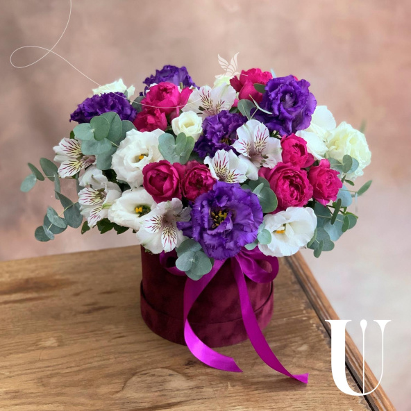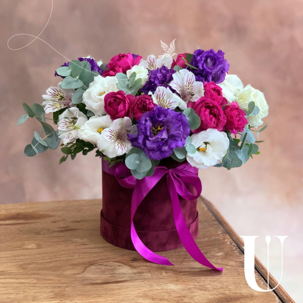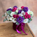 - Шляпная коробка бархатная, бордовая (выс. 16 см, диам. 16 см) - 1 шт