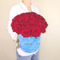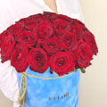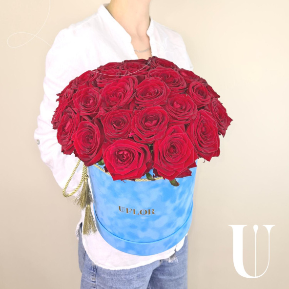 - Шляпная коробка бархатная (U), голубая (выс. 25 см, диам. 20 см) - 1 шт