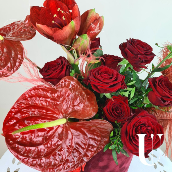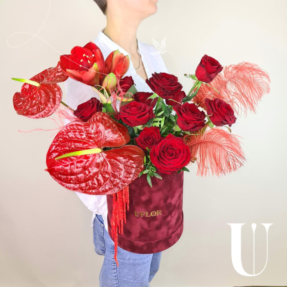 - Шляпная коробка бархатная (U), тёмно-винная (выс. 25 см, диам. 20 см) - 1 шт