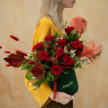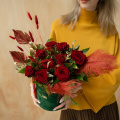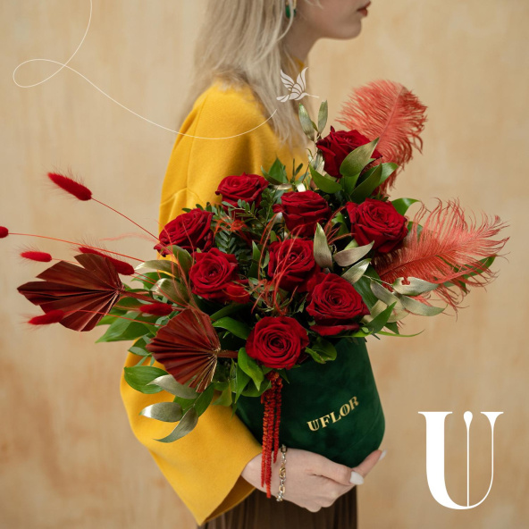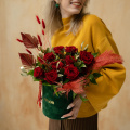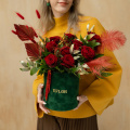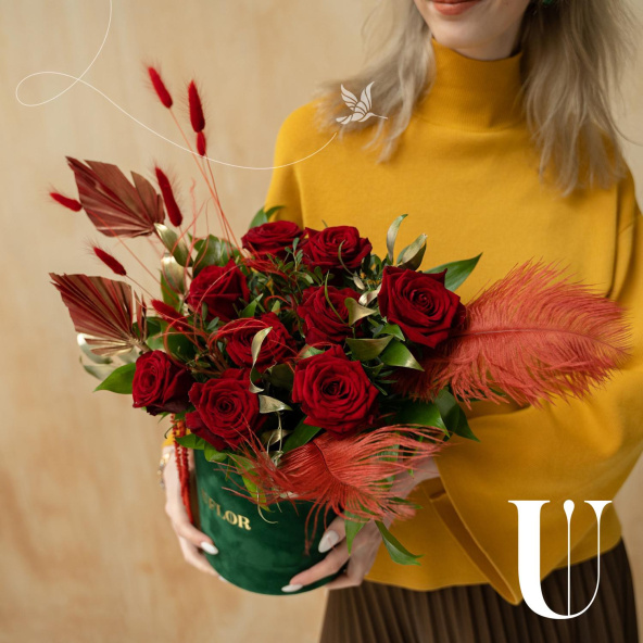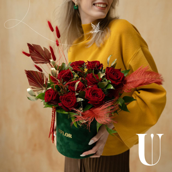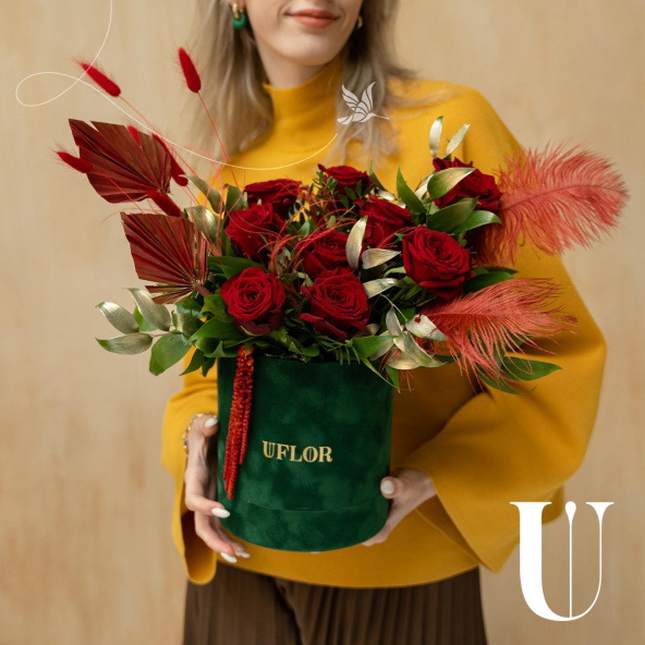 - Шляпная коробка бархатная (U), тёмно-зеленая (выс. 18 см, диам. 16 см) - 1 шт