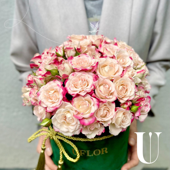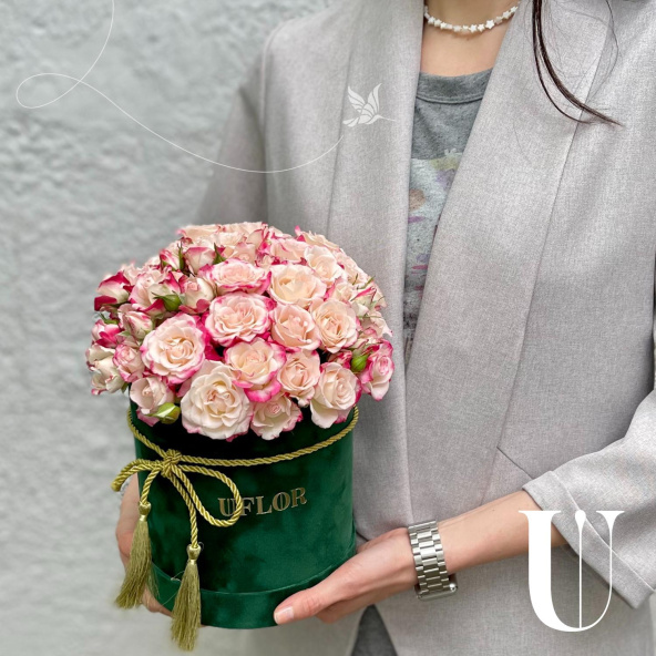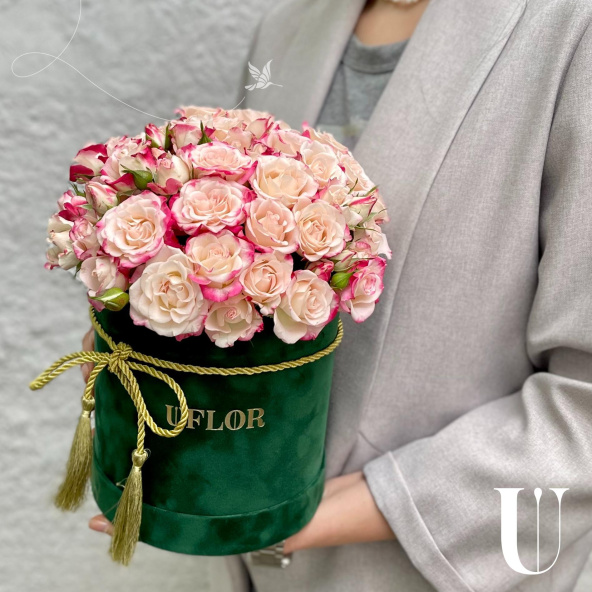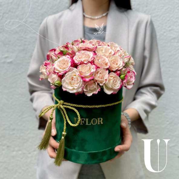 - Шляпная коробка бархатная (U), тёмно-зеленая (выс. 18 см, диам. 16 см) - 1 шт