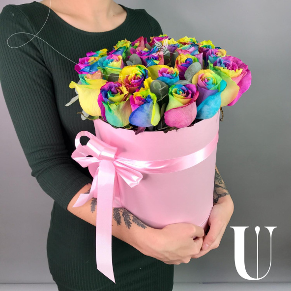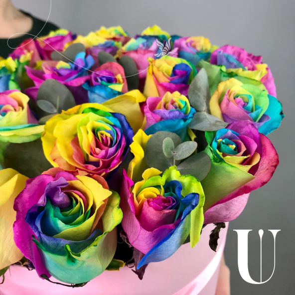 - Роза, Эквадор, радужная, 70 см. - 25 шт