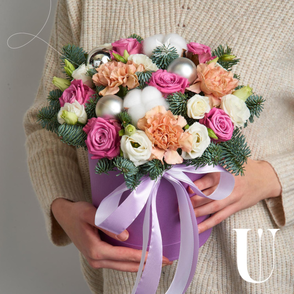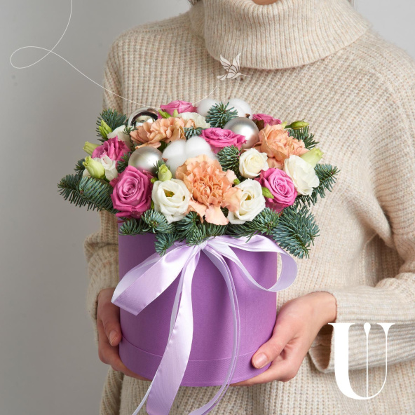 - Шляпная коробочка сиреневая 16*16 см. - 1 шт