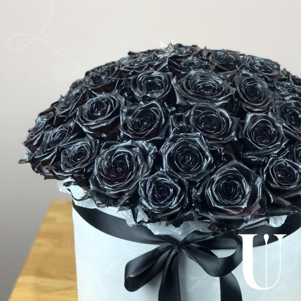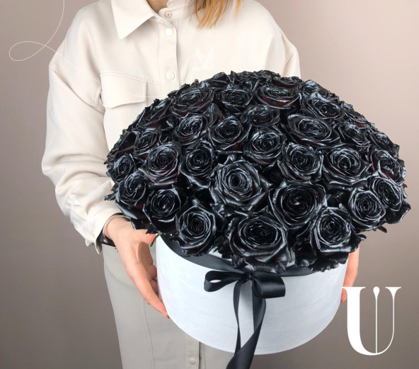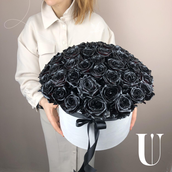 Стильная шляпная коробка с розами в чёрном цвете подчеркнёт индивидуальность дарителя