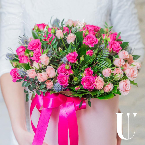 - Шляпная коробка маджестик (U), светло-розовая (выс. 25 см, диам. 20 см) - 1 шт