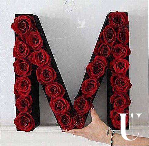 Цветочная буква М, В, Е, Л, Н, О, С, Т, К с красными эквадорскими розами
