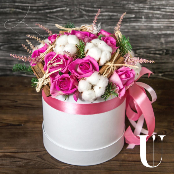 - Шляпная коробка эфалин, белая (выс. 20 см, диам. 18 см) - 1 шт
