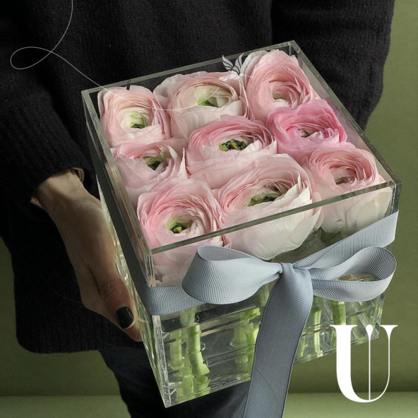 Цветы в коробке "Ранункулусы в кристальной коробке"