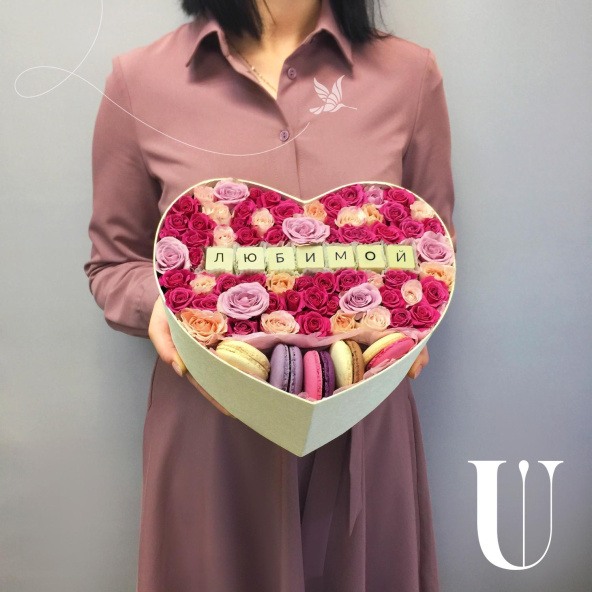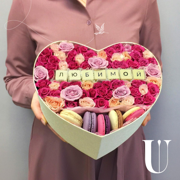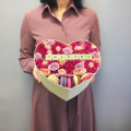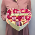 Композиция из розовой орхидеи, нежно-розовых диантусов, роз и зефира в шляпной коробке
