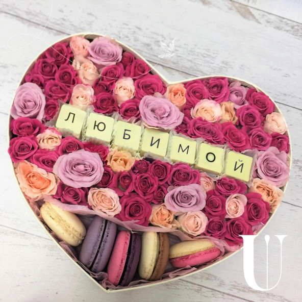 Нежная композиция из орхидей и альстромерий в шляпной коробке маджестик
