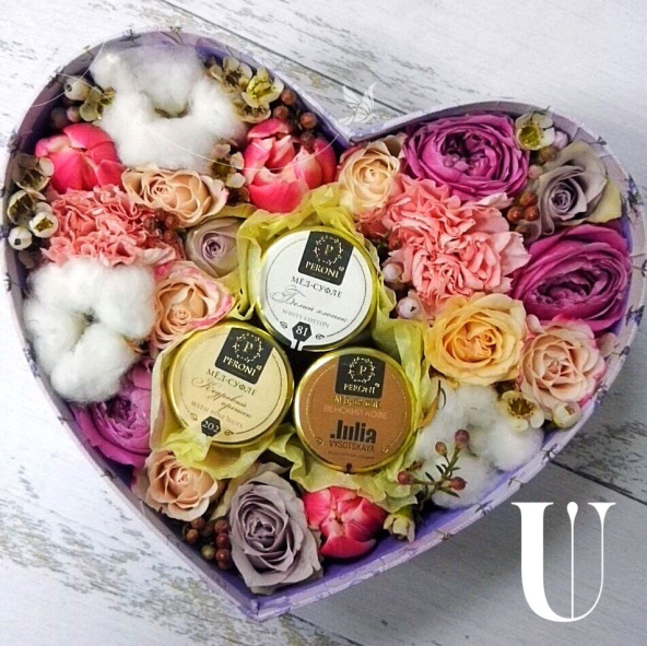 - Цветы и мед-суфле в подарочной коробке 3*30гр