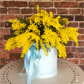 Нежная композиция из орхидей и альстромерий в шляпной коробке маджестик