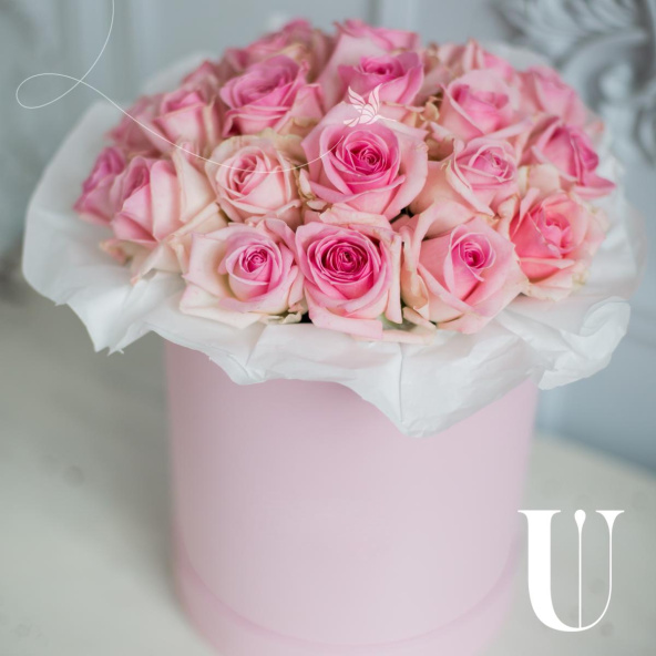 - Цветочная композиция в шляпной коробке. В составе роза 29шт. Композиция собрана в специальной флористической губке