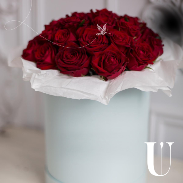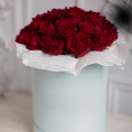 - Цветочная композиция в шляпной коробке. В составе роза 29шт. Композиция собрана в специальной флористической губке