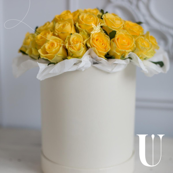 - Цветочная композиция в шляпной коробке. В составе роза 29шт. Композиция собрана в специальной флористической губке