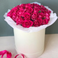 - Цветочная композиция в шляпной коробке. В составе роза 29шт. Композиция собрана в специальной флористической губке