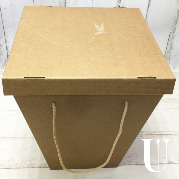 - В которой удобно перевозить и дарить цветы. Размеры коробки: высота - 25 см