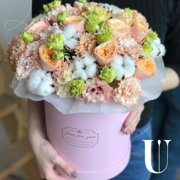 - Цветочная композиция в шляпной коробке