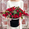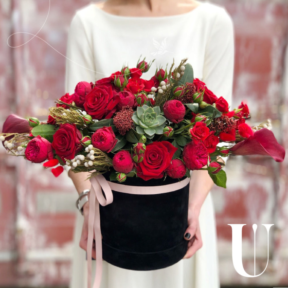 - Шляпная коробка бархатная, чёрная (выс. 20 см, диам. 18 см) - 1 шт