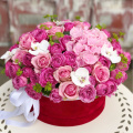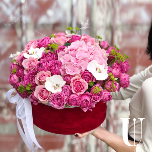 - Шляпная коробка бархатная (U), красная (выс. 15 см, диам. 35 см) - 1 шт