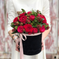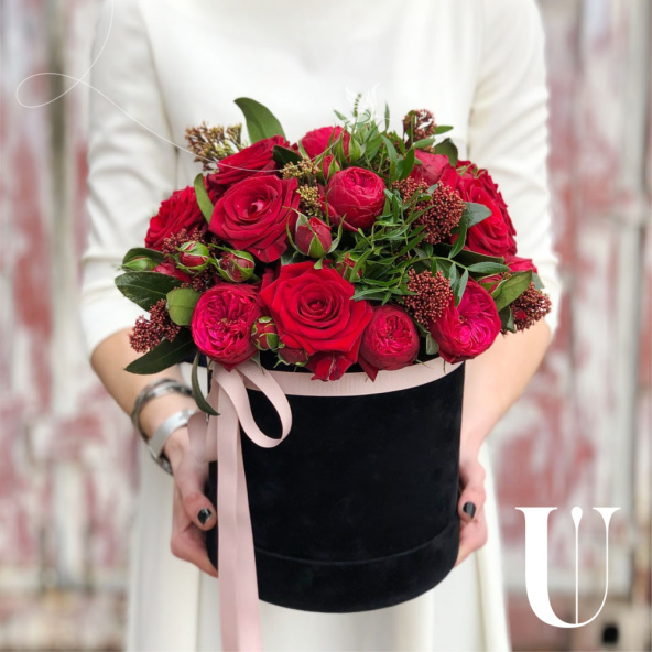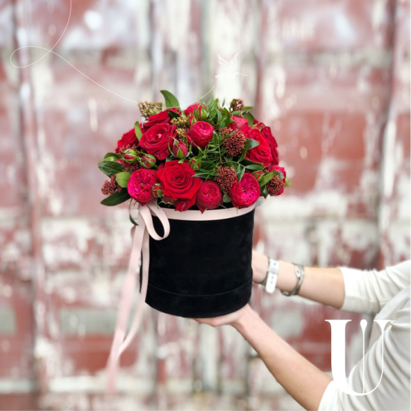 - Шляпная коробка бархатная, чёрная (выс. 20 см, диам. 18 см) - 1 шт