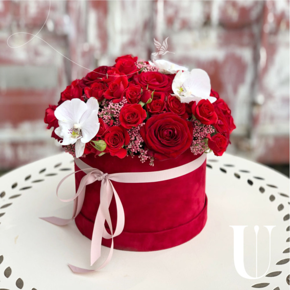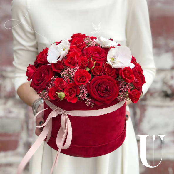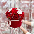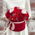 - Шляпная коробка бархатная (U), красная (выс. 15 см, диам. 20 см) - 1 шт