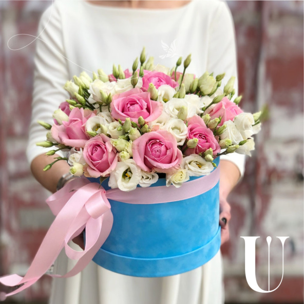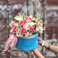 - Шляпная коробка бархатная (U), голубая (выс. 15 см, диам. 20 см) - 1 шт