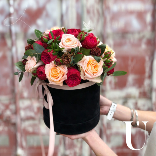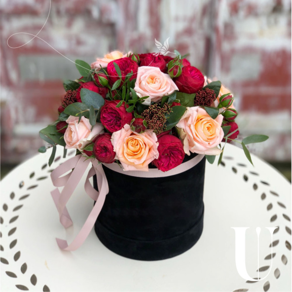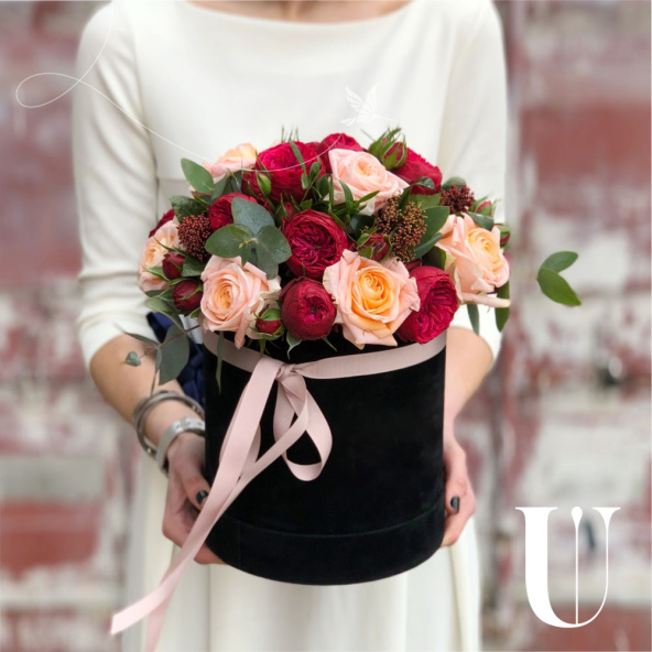 - Шляпная коробка бархатная, чёрная (выс. 20 см, диам. 18 см) - 1 шт