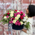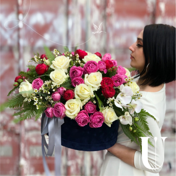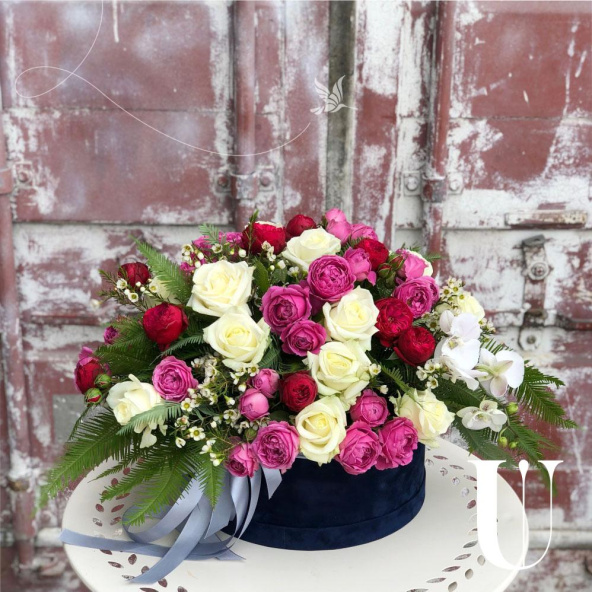- Шляпная коробка бархатная, синяя (выс. 15 см, диам. 30 см) - 1 шт