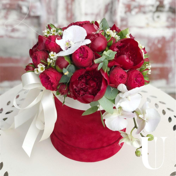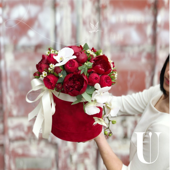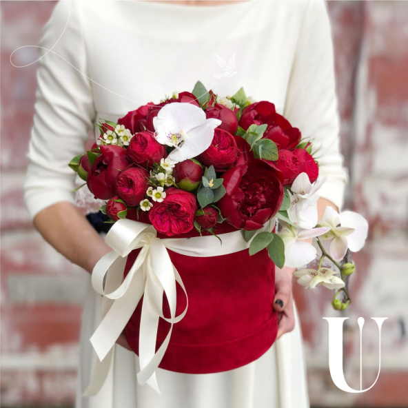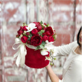 - Шляпная коробка бархатная, красная (выс. 20 см, диам. 18 см) - 1 шт