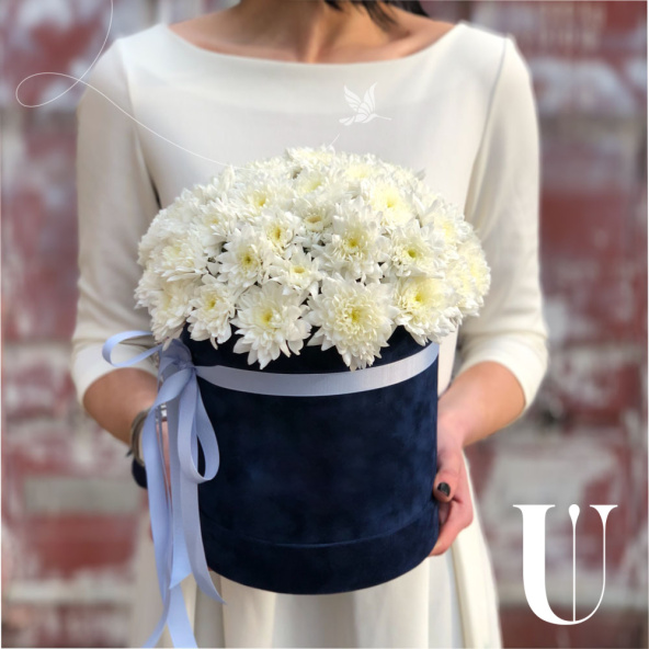 - Шляпная коробка бархатная, синяя (выс. 20 см, диам. 18 см) - 1 шт