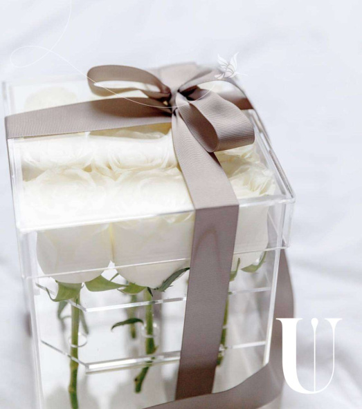 Цветы в коробке "Кристальная коробка с белыми розами"